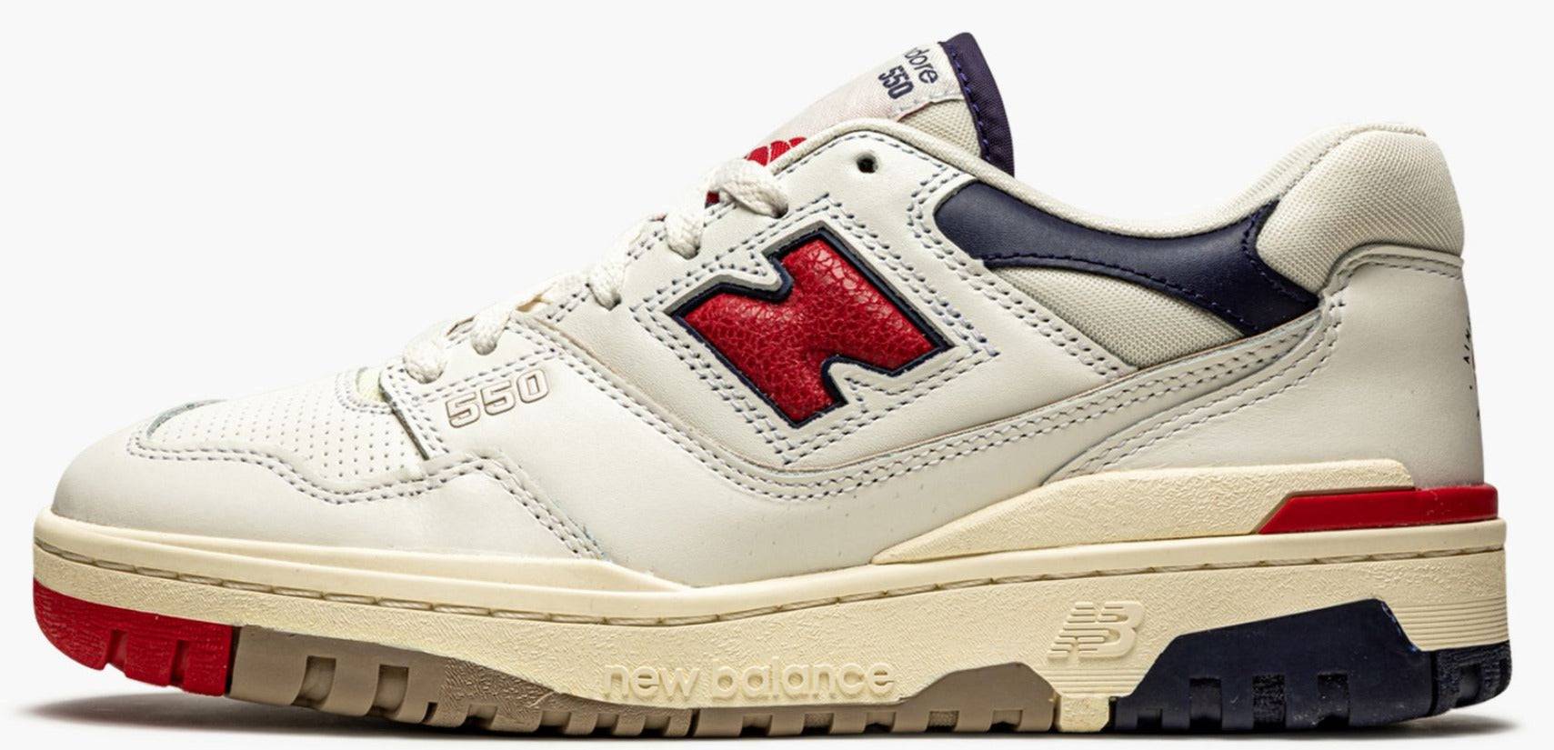 550 “Aime Leon Dore – White Navy Red” offers a faithful reinterpretation of the classic design, blending white, navy, and red tones for a modern yet timeless look. This sneaker embraces simplicity and versatility, perfect for adding a touch of style to any outfit. With its clean lines and attention to detail, this shoe will elevate your streetwear game effortlessly.