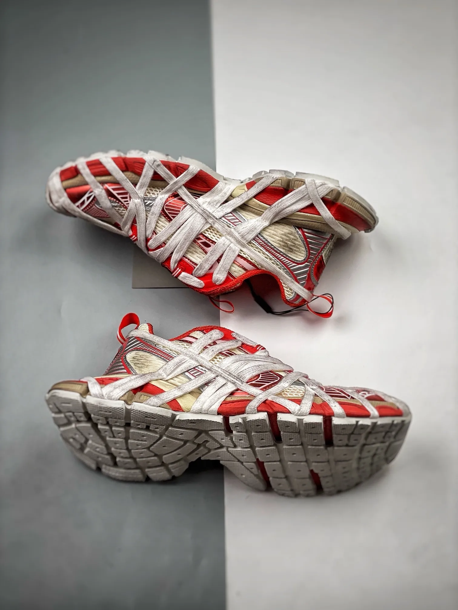 Overall, the Balenciaga 3XL Extreme Lace Sneakers Strap Style White And Red are a must-have addition to any sneaker collection. Elevate your style with these modern and eye-catching sneakers that are sure to make a statement wherever you go.