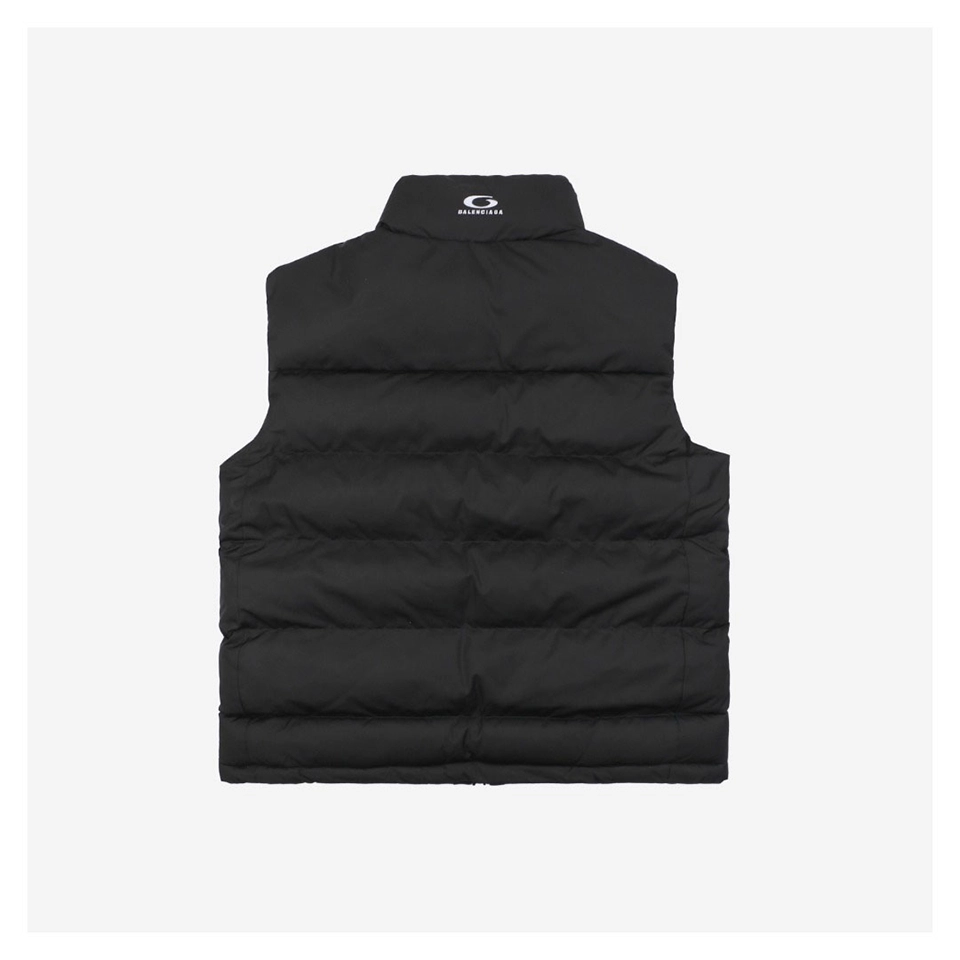 Balenciaga Circle Logo Padded Vest offers a modern twist on a classic design. This vest is a faithful reinterpretation of the original, featuring a sleek silhouette with a padded construction for added warmth and comfort. The standout feature is the bold circle logo prominently displayed on the chest, adding a touch of contemporary flair to the garment. With a zip closure and high neck, this vest is not only stylish but also practical for chilly days.