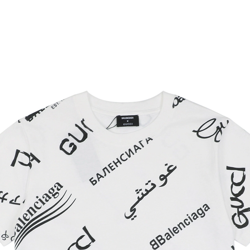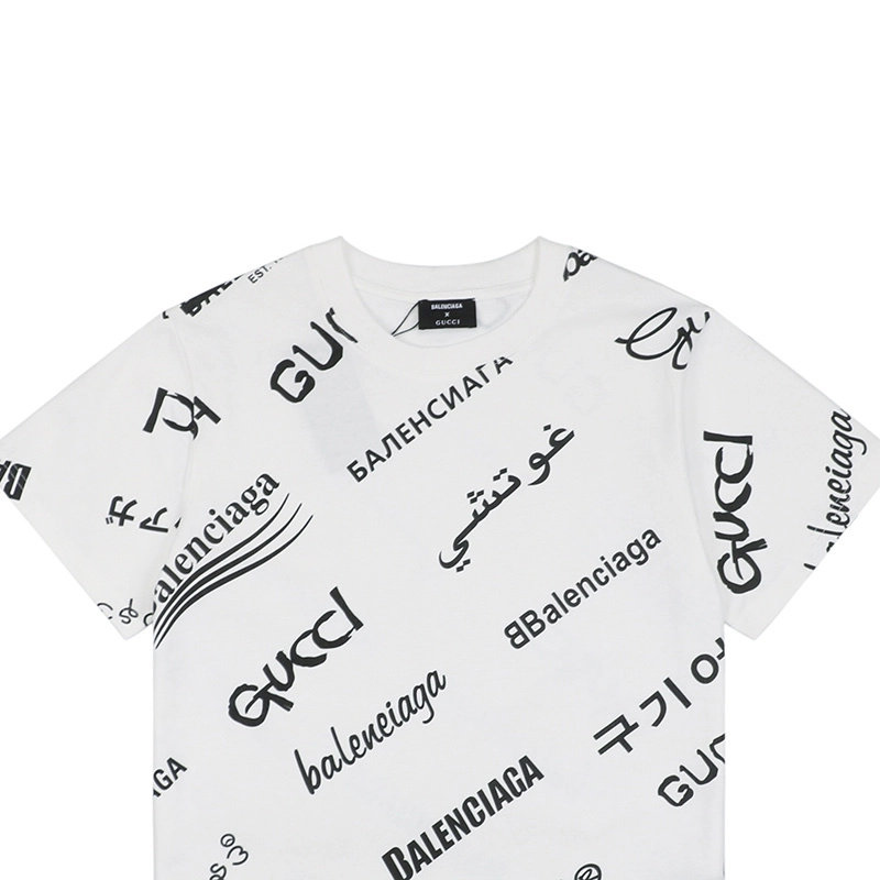 BALENCIAGA CO-Branding-Tiert-Multilabel-Barrage-Print T-shirt Reps is a faithful reinterpretation of the iconic original design. This high-quality replica captures the essence of the Balenciaga brand with precision, featuring the striking multilabel barrage print that has become synonymous with the fashion house. Made with attention to detail, this t-shirt offers a trendy and stylish look that is perfect for casual outings and streetwear fashion. The comfortable fit and soft fabric make it a versatile piece for everyday wear.