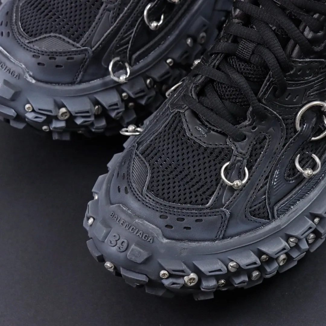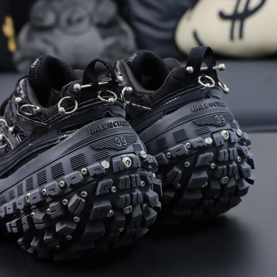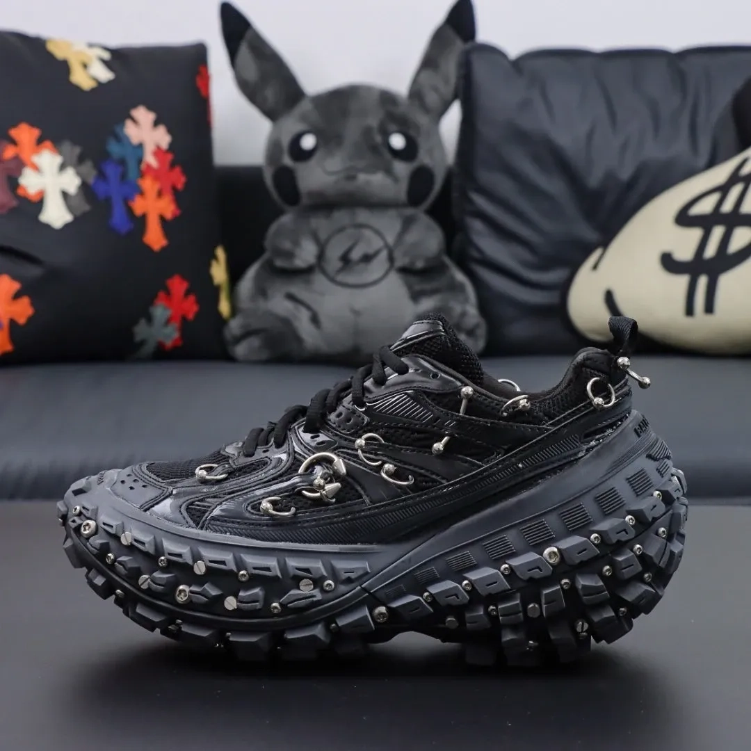 Balenciaga Defender Rubber Platform Sneakers Black Latest Version are a modern take on the classic athletic shoe design. These sneakers perfectly balance comfort and style, making them a versatile choice for everyday wear. The sleek black color adds a touch of sophistication, while the distinctive platform sole provides a trendy twist.