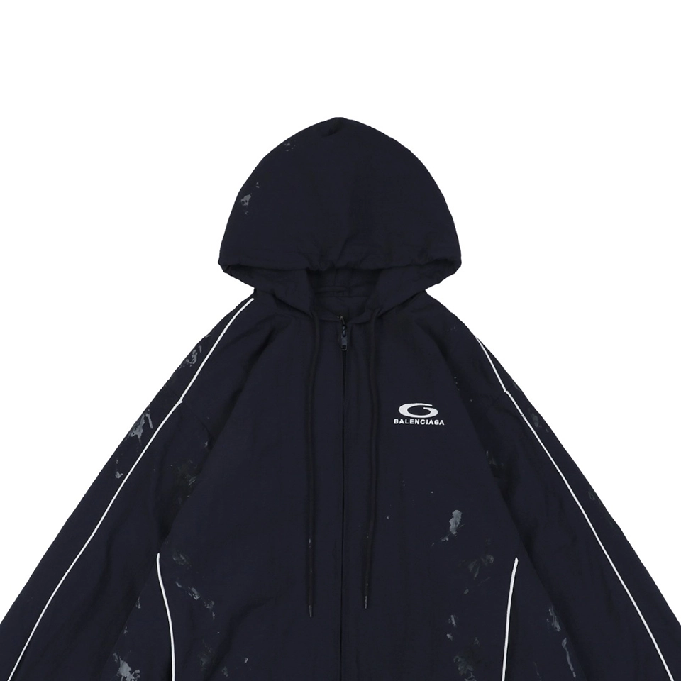 Upgrade your outerwear collection with the Balenciaga Distressed Circle Logo Hooded Jacket and make a statement wherever you go.