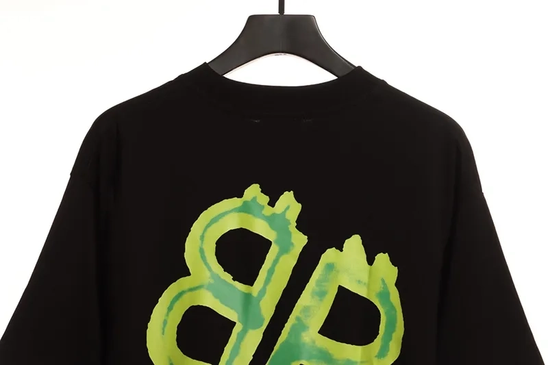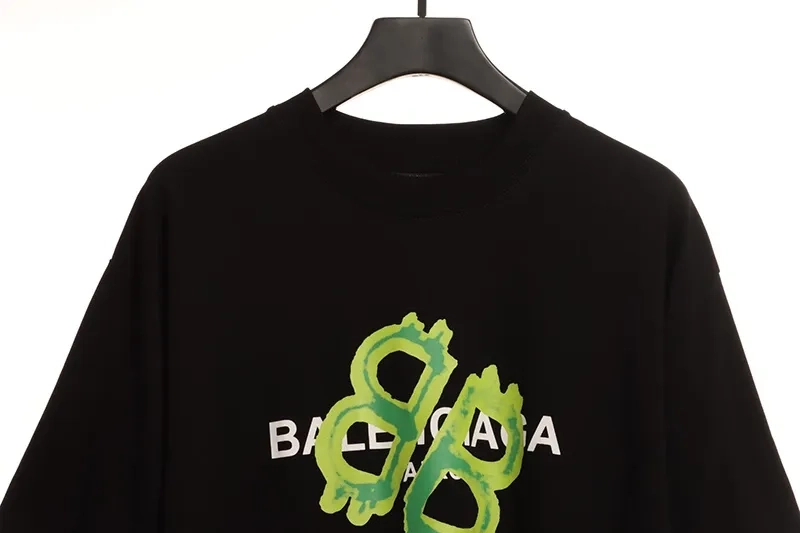 Balenciaga Green Lacquered Double B T-Shirt is a modern take on a classic tee. The vibrant green color and glossy finish add a fresh twist to the iconic Double B logo design. Made to stand out, this shirt is a faithful reinterpretation of the original Balenciaga style. Its comfortable fit and unique detailing make it a perfect statement piece for any casual outfit.