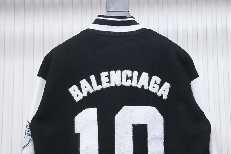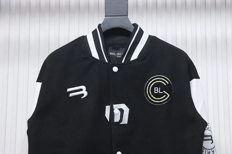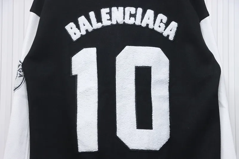 Balenciaga Patchwork Baseball Jacket with Leather Sleeves combines classic sportswear and luxury in a faithful reinterpretation. The patchwork design adds a modern twist, while the leather sleeves elevate the look with a touch of sophistication. The jacket seamlessly blends urban street style with high-end fashion, making it a versatile piece that can be dressed up or down for any occasion. Its unique yet timeless appeal is perfect for those who appreciate both tradition and innovation in their wardrobe.