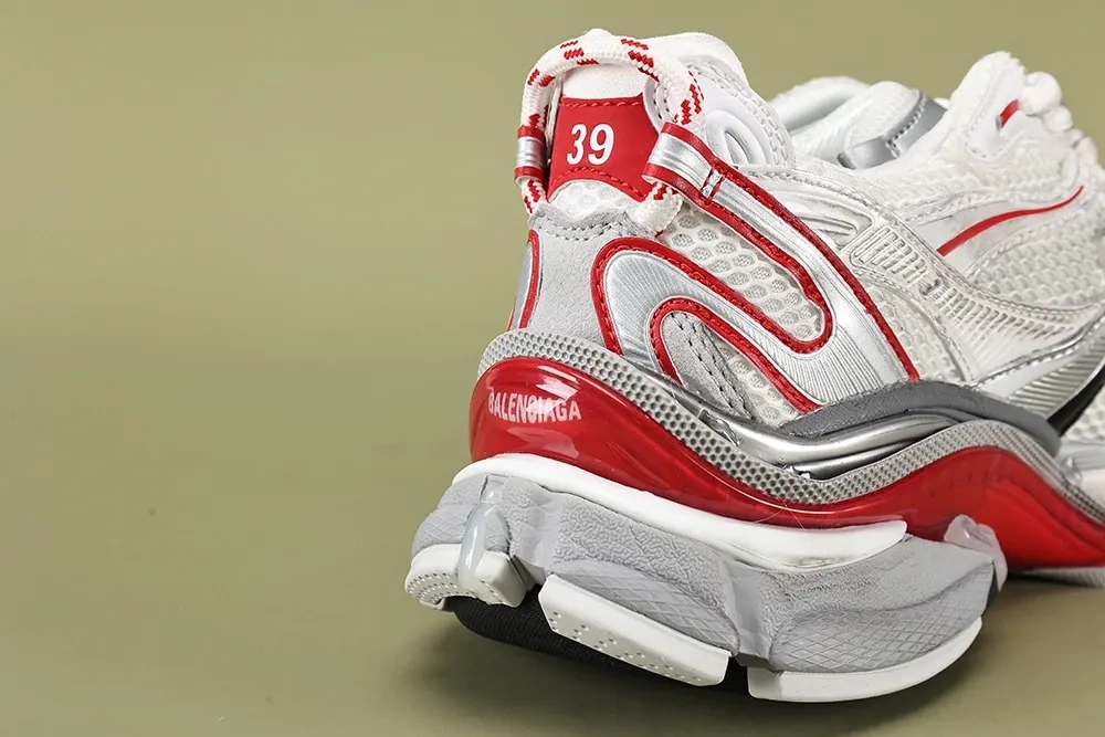 The Balenciaga Runner 2 features a sleek grey, white, and red color scheme that gives it a dynamic and eye-catching look. The upper is crafted from high-quality materials that provide durability and comfort, making it a reliable choice for all-day wear. The classic lace-up closure ensures a secure fit, while the padded collar and tongue offer additional support and cushioning.