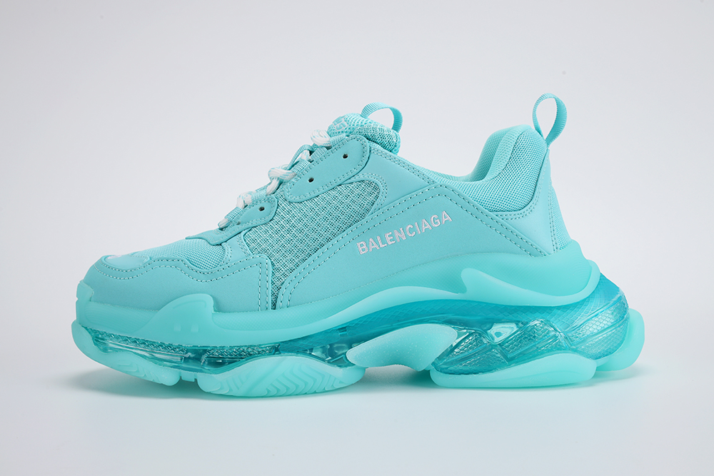 BALENCIAGA TRIPLE-S CRYSTAL BLUE offers a fresh take on the iconic Triple-S sneaker design, featuring a blend of modern style and classic elements. These crystal blue sneakers are a faithful reinterpretation of the original design, with a vibrant color palette that adds a bold touch to any outfit. The Triple-S silhouette remains true to its chunky profile, creating a statement look that is both edgy and versatile.