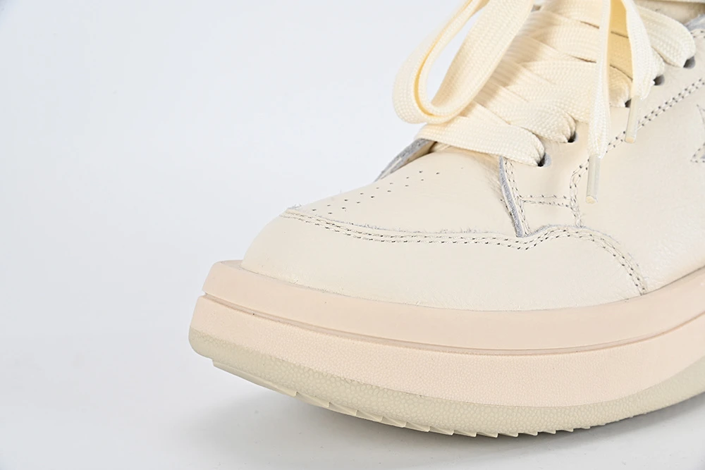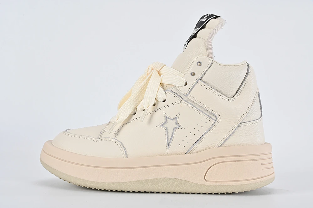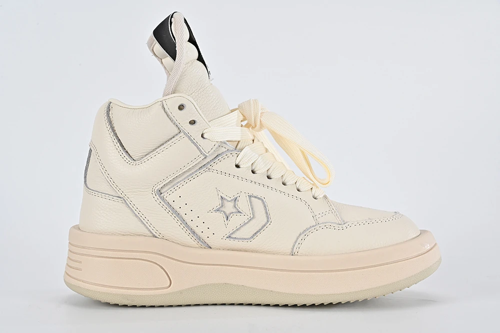 Converse x Rick Owens TURBOWPN MID Egret Top-Version is a modern take on the classic Converse silhouette, reimagined by renowned designer Rick Owens. The sneaker features a sleek mid-top design in a versatile egret color that effortlessly blends with any outfit. The edgy details and premium materials elevate this collaboration to create a unique and stylish statement piece for any fashion-forward individual. Whether worn casually or for a special occasion, these sneakers exude confidence and sophistication while providing comfort and durability.