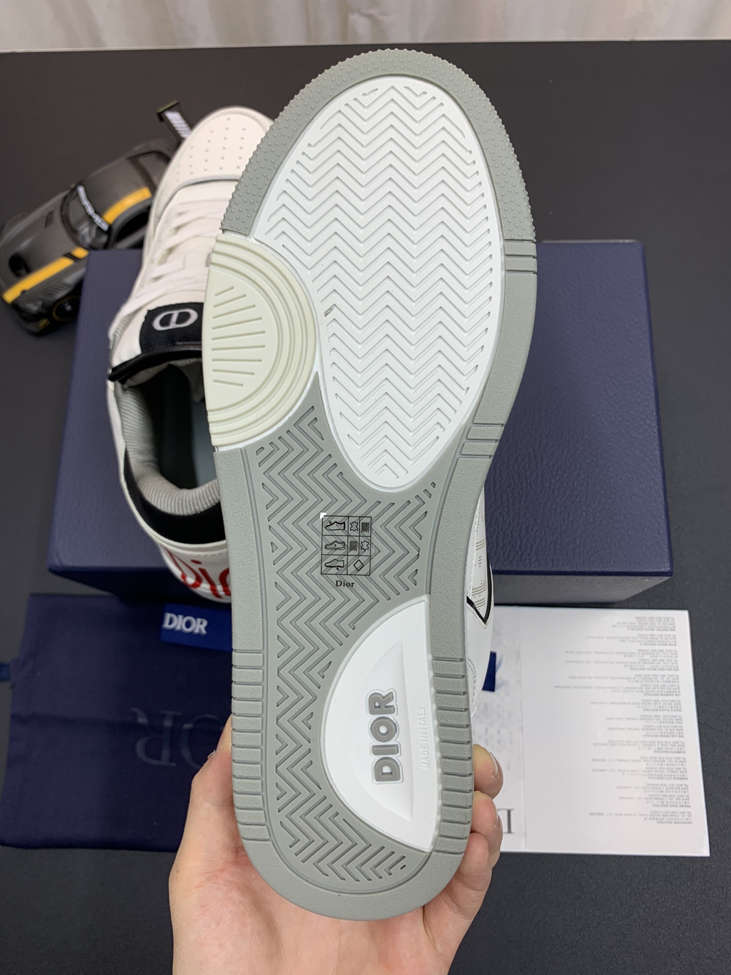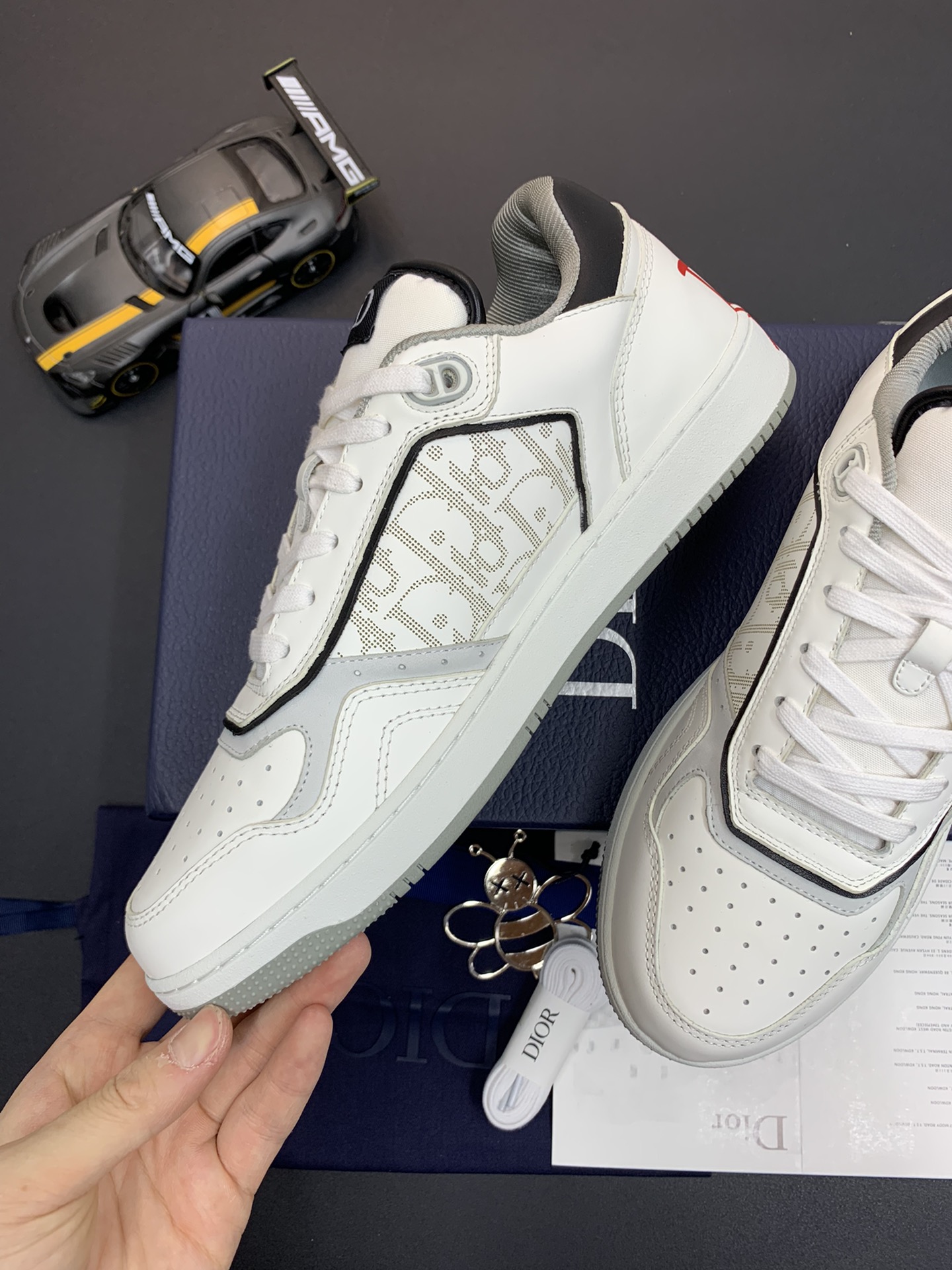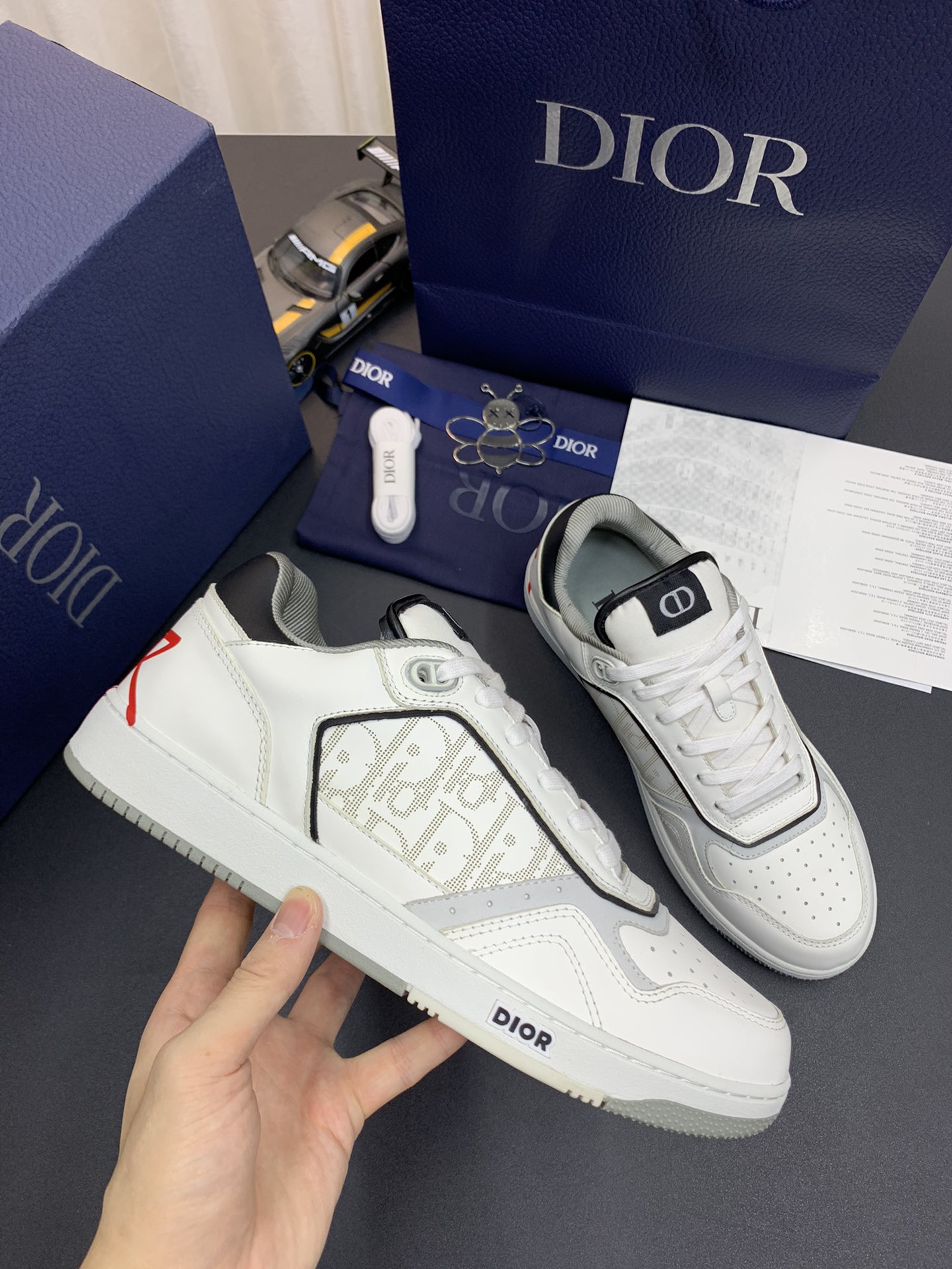 DIOR B27 Low Top Sneakers | White Leather Red logo: Elevate your casual style with these DIOR B27 Sneakers, a modern twist on a classic design. These low-top sneakers feature a sleek white leather exterior with a bold red logo detail for a touch of luxury. The clean lines and minimalist aesthetic make them a versatile choice for both casual and semi-formal outfits. Crafted with attention to detail, these sneakers provide comfort and style in equal measure.
