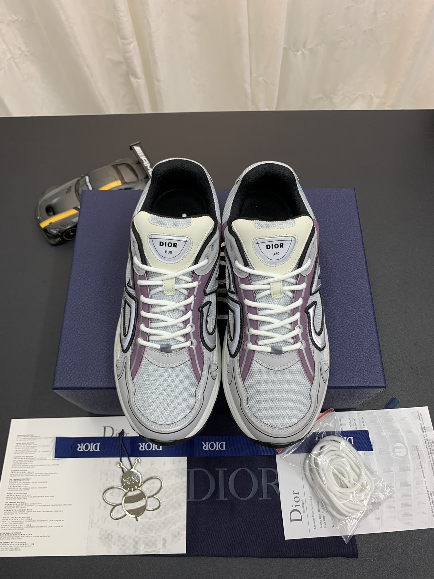 DIOR B30 Sneaker Beige & Lavender effortlessly combines timeless style with modern comfort. These sneakers are a faithful reinterpretation of the original design, featuring a beautiful beige and lavender color scheme that exudes elegance. The sleek silhouette and premium construction make them perfect for casual outings or even semi-formal events. With a blend of sophistication and versatility, these sneakers are a must-have addition to any fashion-forward wardrobe.
