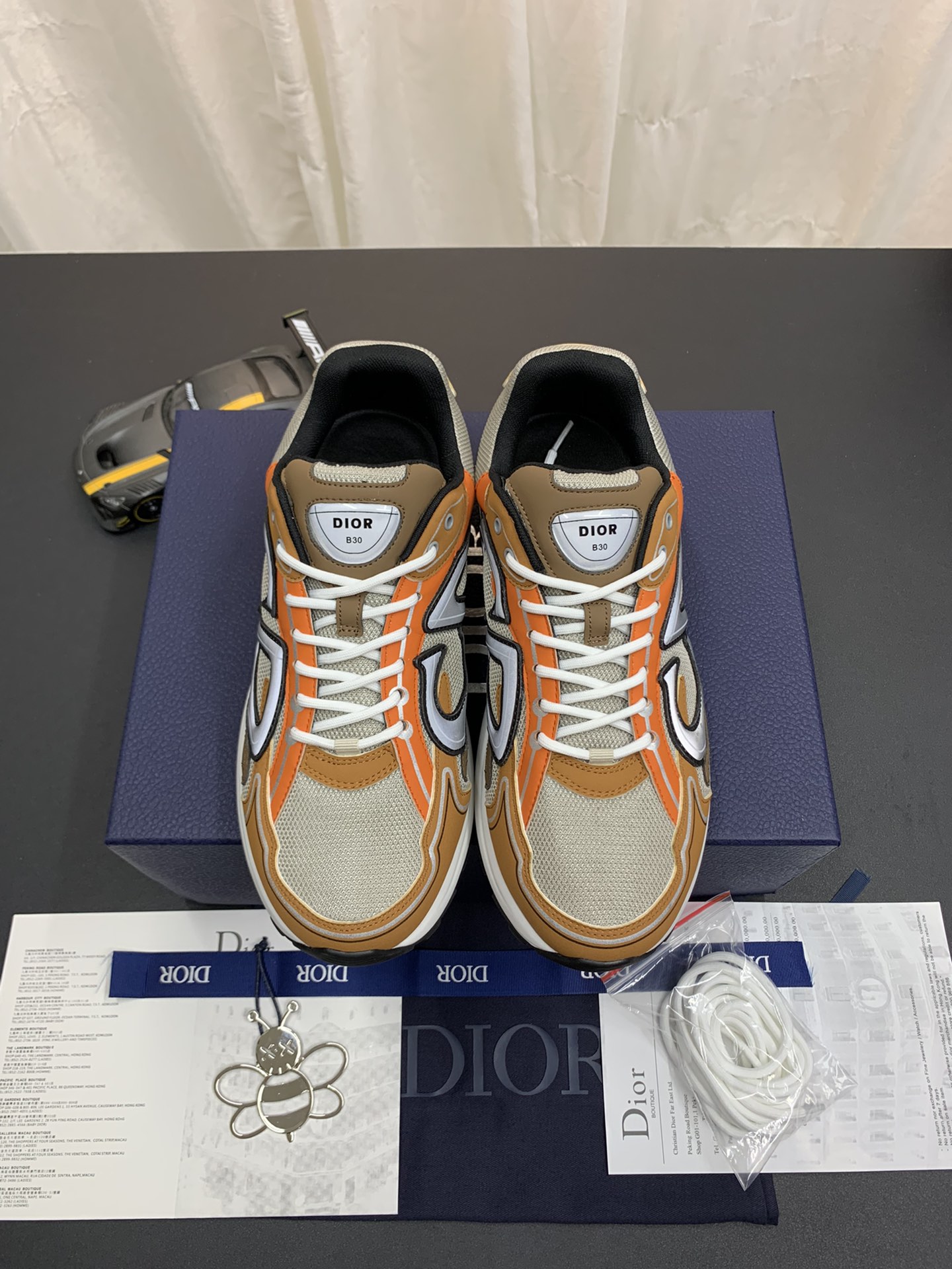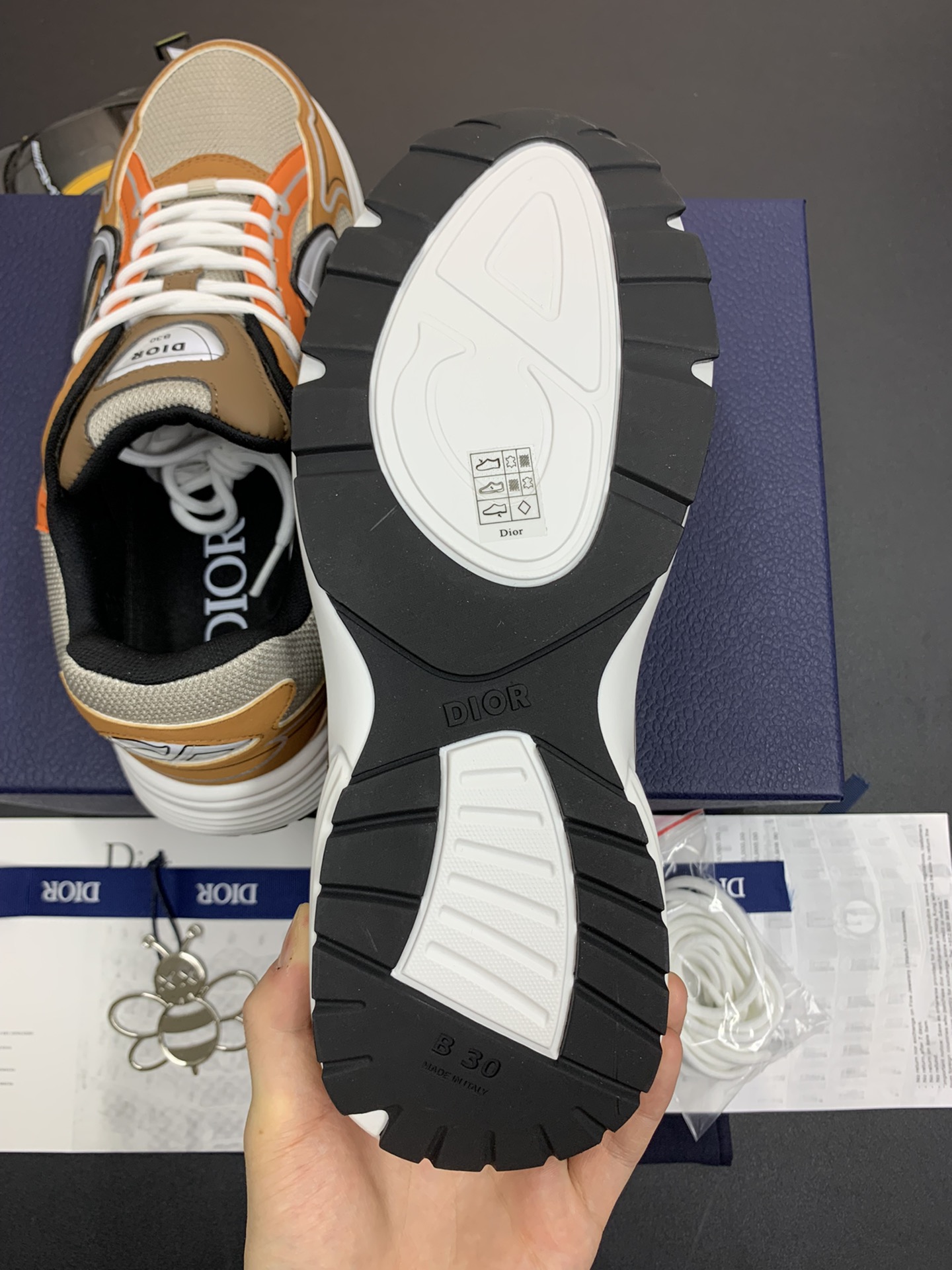 DIOR B30 Sneaker Cream & Orange is a modern take on a classic design, blending elegance and sporty vibes seamlessly. The cream-colored upper, accented with vibrant orange details, brings a fresh pop of color to your outfit. These sneakers feature a comfortable fit and durable construction, making them perfect for everyday wear. With a touch of luxury from DIOR, these sneakers are a stylish choice for any casual occasion.
