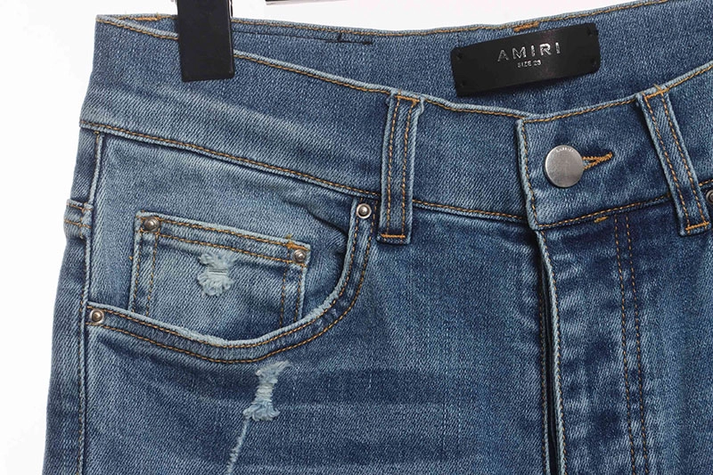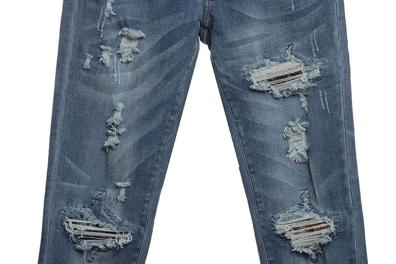 Faded blue ripped jeans Reps are a faithful reinterpretation of classic distressed denim. Featuring a faded wash and carefully placed rips, these jeans exude laid-back charm and effortless style. The relaxed fit and comfortable fabric make them perfect for everyday wear, adding a touch of edgy flair to any outfit. Whether dressed up with a sleek blouse or down with a casual tee, these jeans are a versatile wardrobe staple that will quickly become a favorite go-to piece.