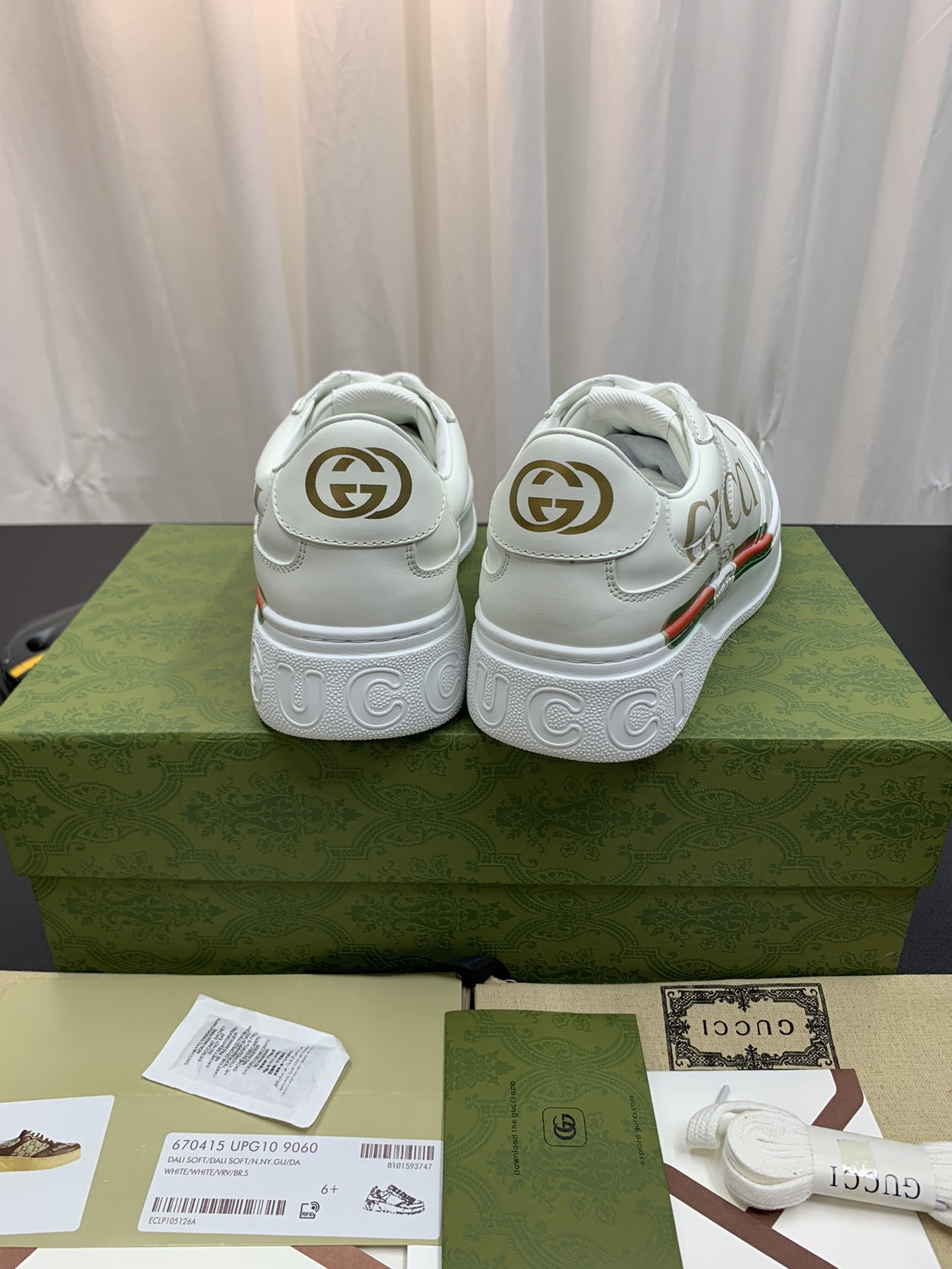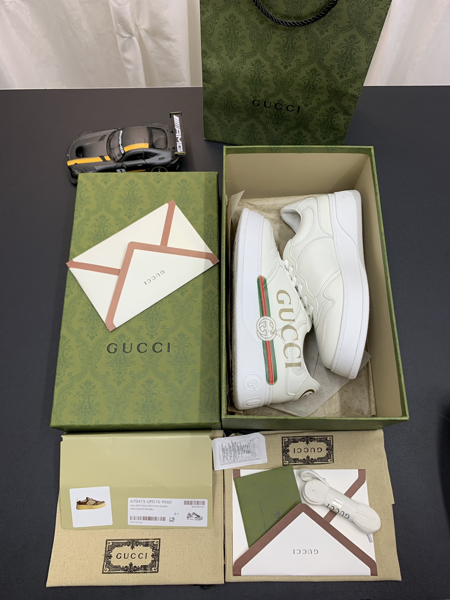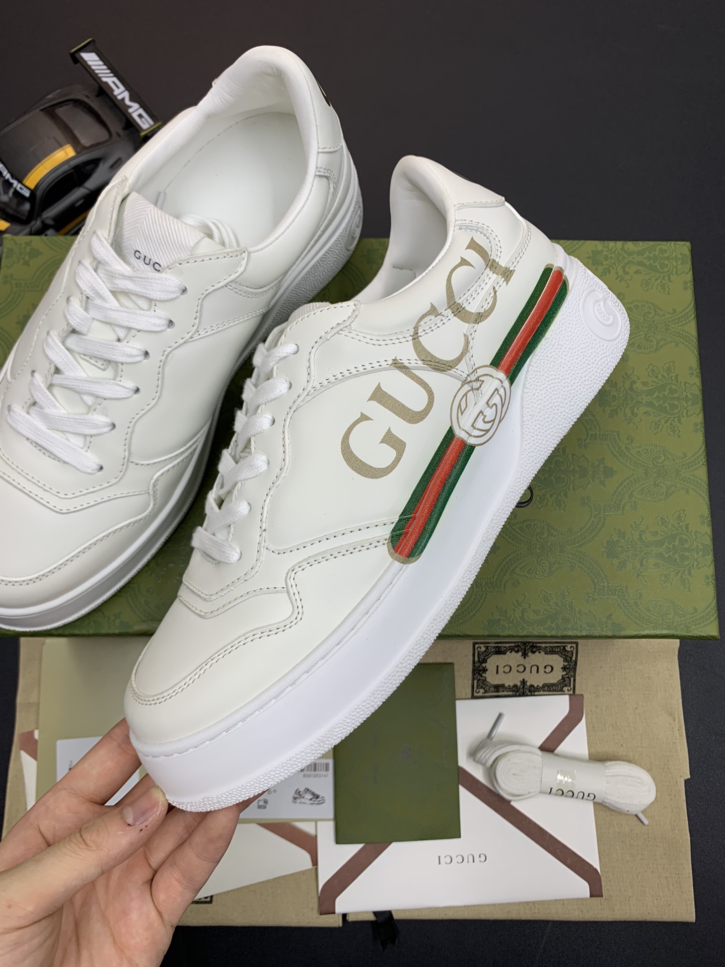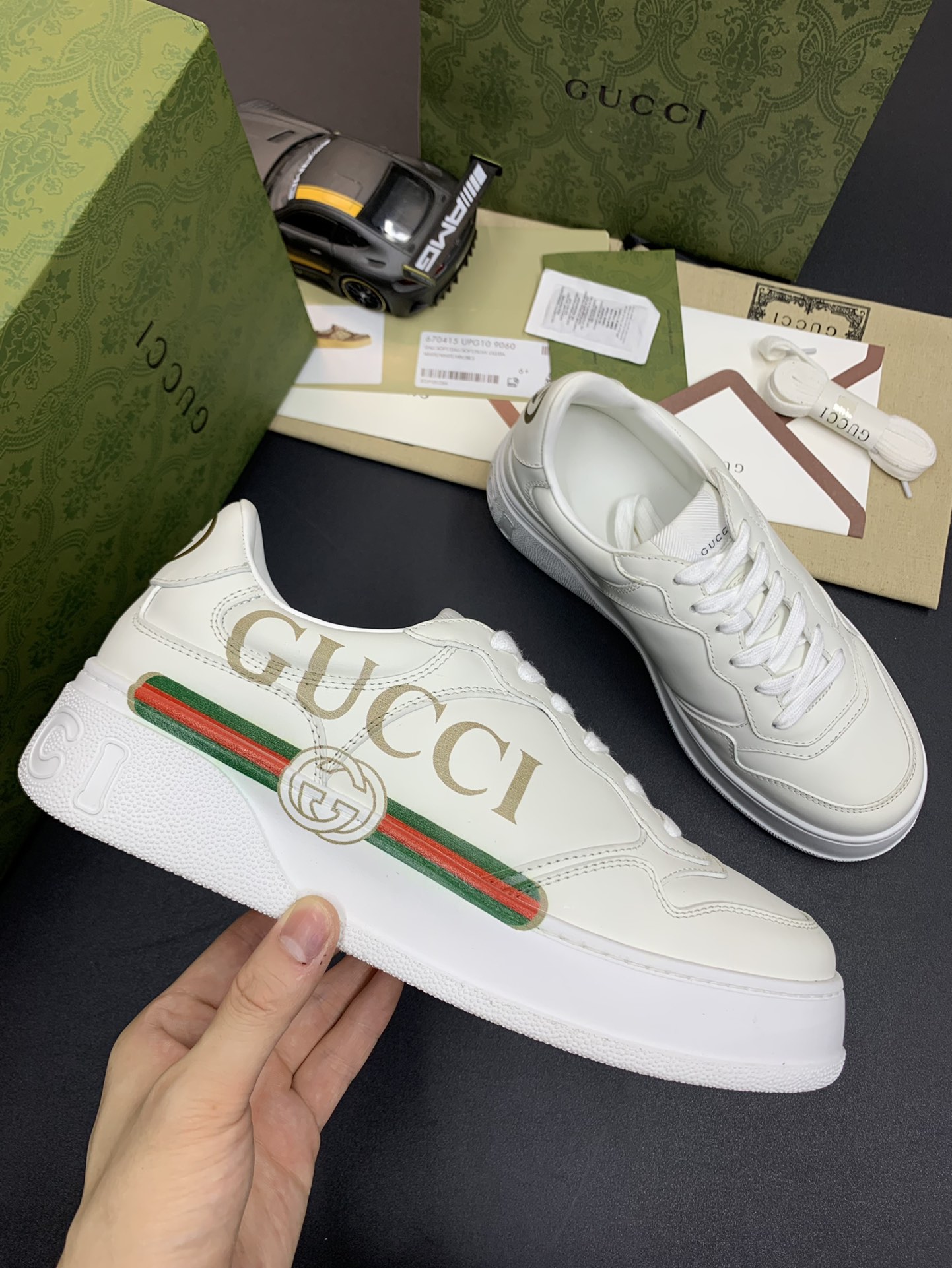 Crafted with precision, these sneakers feature the signature GG monogram pattern on their canvas material, giving off a luxurious and classic look. The low-top design and lace-up closure ensure a comfortable and secure fit for daily wear. Whether you’re dressing up a casual outfit or aiming for a more high-fashion look, these sneakers are versatile and can elevate any ensemble.