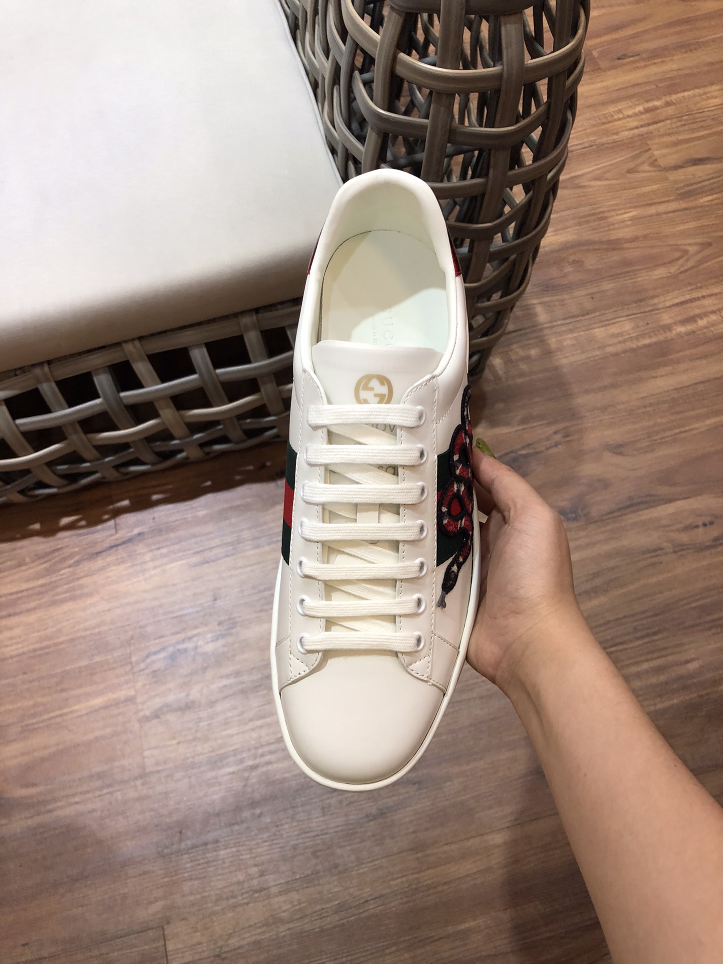 GUCCI Replica – Ace Snake Low Top Rep Sneakers are a high-quality imitation of the iconic Gucci design, carefully crafted to mirror the original style in every detail. These sneakers capture the essence of luxury and fashion at a fraction of the price. Featuring the signature snake motif, these low top sneakers are a perfect choice for those who appreciate timeless elegance and contemporary trends. The attention to detail in the replica ensures a striking resemblance to the authentic Gucci sneakers, making it a desirable choice for fashion enthusiasts.