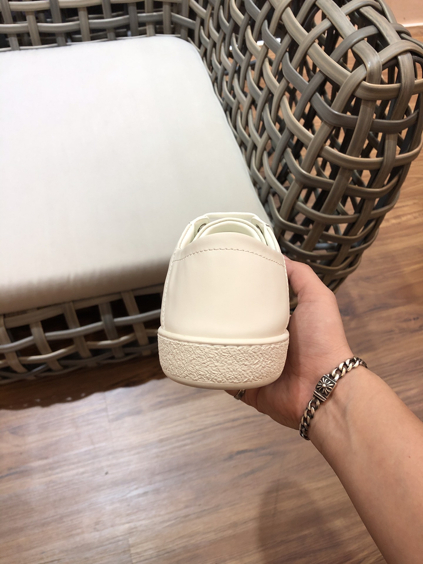 GUCCI Replica – White Ace Bee & Stars Low Top Rep Sneakers offer a stylish and affordable option for those who admire the iconic design of the original Gucci sneakers. Faithfully reinterpreted, these low top sneakers feature the signature bee and stars accents on a crisp white background. The attention to detail in the replication ensures that the essence of the Gucci style is captured, making these sneakers a fashionable choice for any casual outfit. The comfortable fit and durable construction make them suitable for everyday wear, adding a touch of luxury to your footwear collection without the designer price tag.