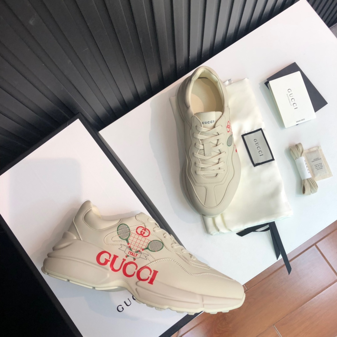 Experience the perfect blend of tradition and modernity with the Gucci Rhyton Low Top Sneaker – TENNIS Logo Leather.