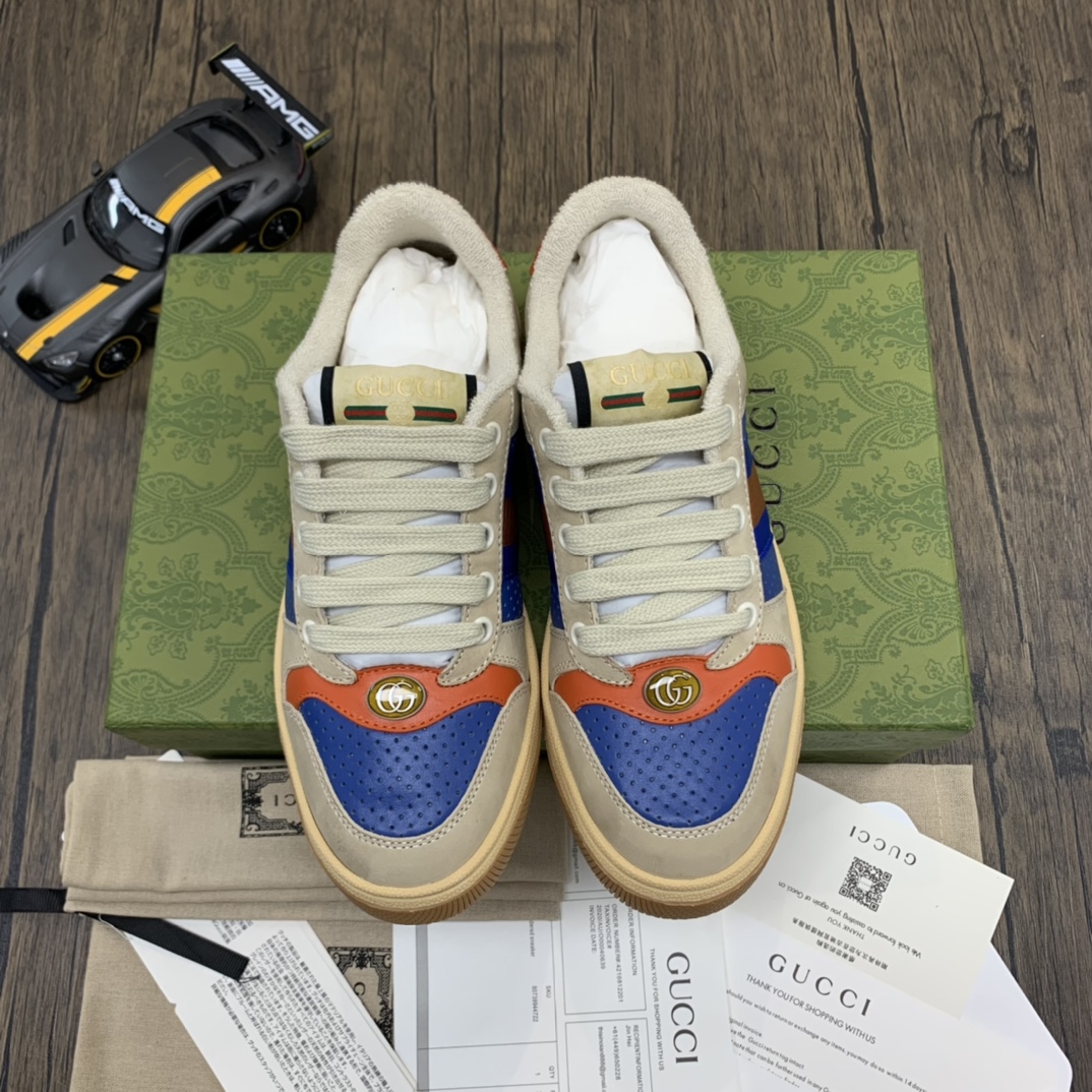 The Gucci Screener Sneakers in a striking blue color are a modern interpretation of a classic design, blending retro elements with contemporary style. Crafted with attention to detail, these sneakers feature the iconic Gucci logo and signature web stripe for a touch of luxury. The blue leather upper adds a pop of color, while the distressed finish gives them a unique, lived-in look. Whether you’re running errands or meeting friends, these sneakers will elevate your outfit with their effortless cool vibe. The comfortable fit and sturdy construction make them perfect for everyday wear, ensuring both style and durability.