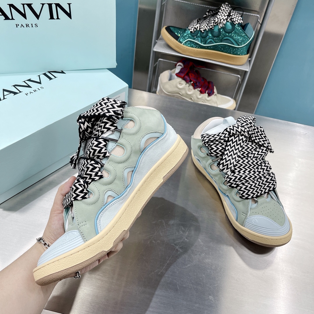 LANVIN Leather Curb Sneakers Green/Blue
