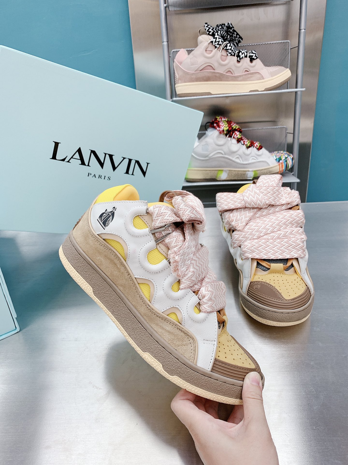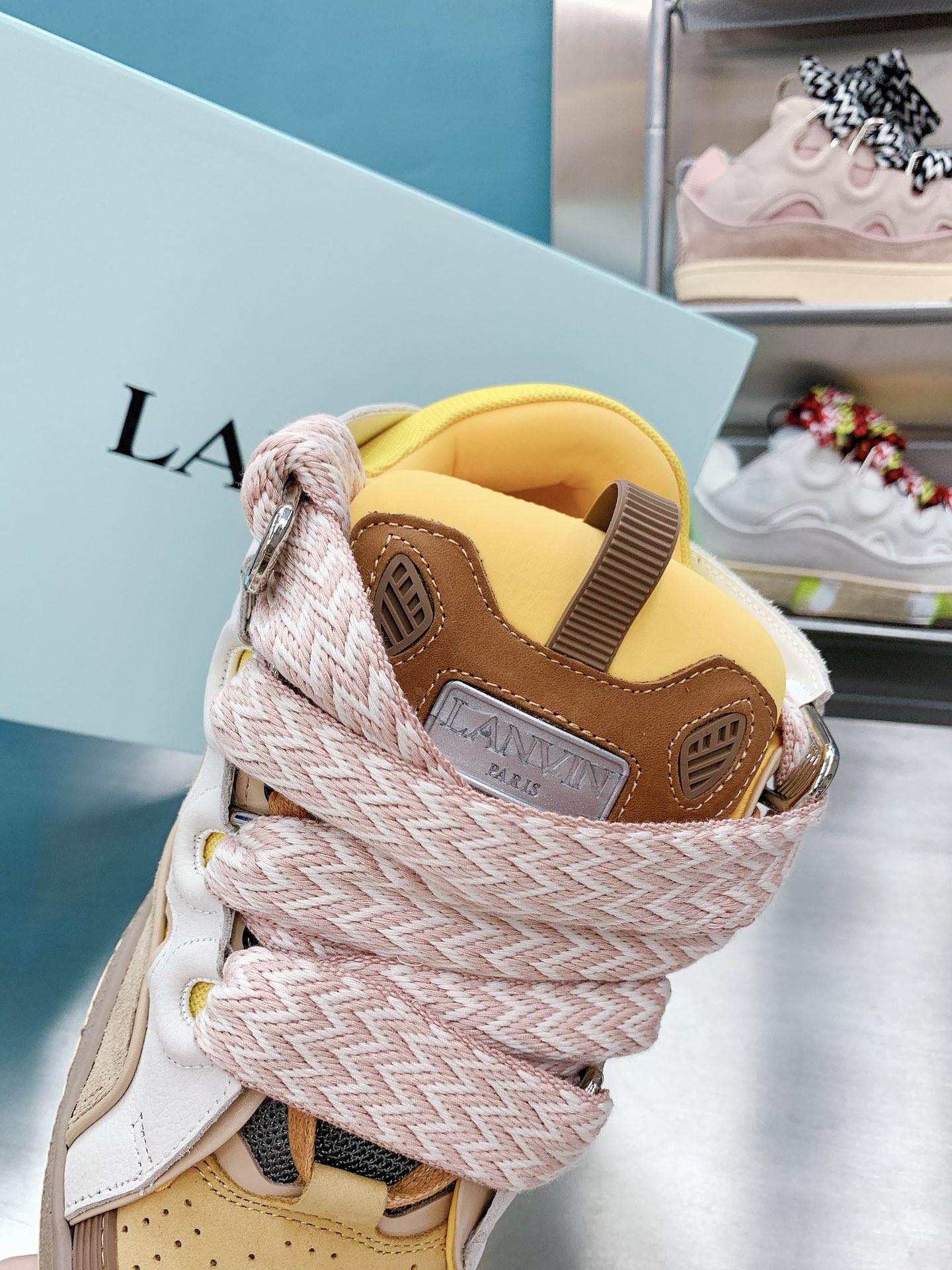 Step out in style and confidence with the LANVIN Leather Curb Sneakers Yellow/Brown, a faithful reinterpretation of the original design that combines traditional craftsmanship with contemporary flair.